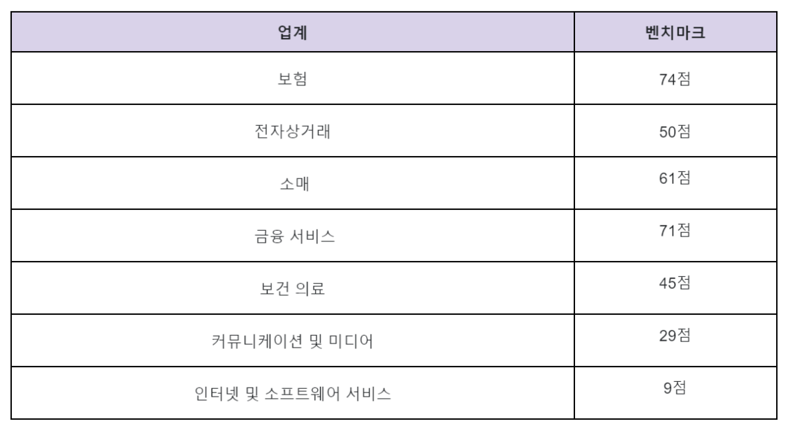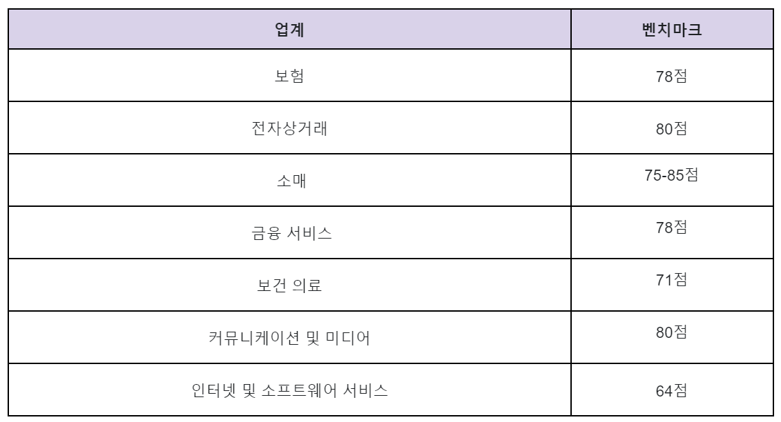 업계별 CES, NPS, C-SAT 벤치마크