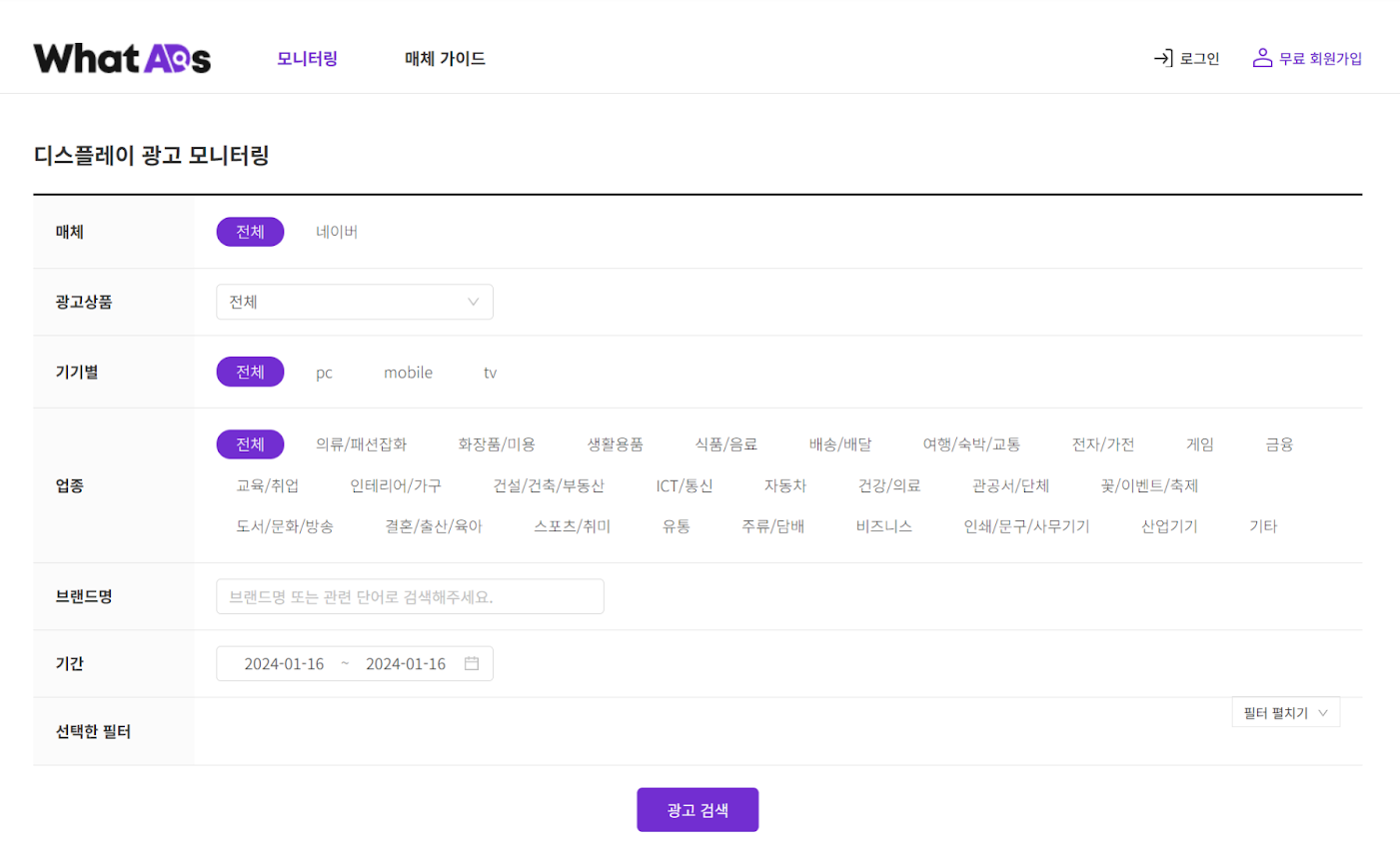 ‘왓애즈’는 네이버에 등록된 배너 광고 레퍼런스를 살펴볼 때 유용한 사이트입니다. 업종과 기기 별로 나눠서 볼 수 있으며 예상 광고비까지 알려주죠. ‘매체 가이드’ 탭에는 다양한 광고 유형의 특성을 간략히 소개하고 있어요. 주니어 퍼포먼스 마케터분들이 참고하시면 좋을 것 같습니다.