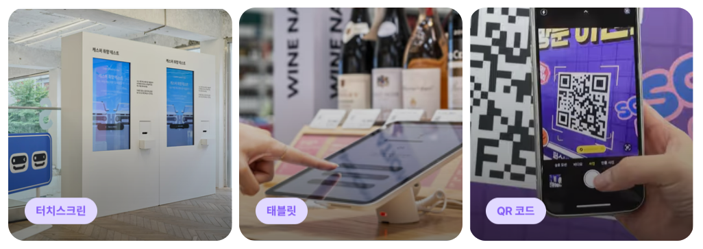 1️⃣터치스크린: 오프라인 공간이 충분히 확보되거나, 스모어 콘텐츠를 이용한 별도의 체험존을 만드실 예정이라면 키오스크와 같은 터치스크린에 배포하시는 걸 추천드려요.