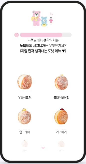 오프라인 매장 고객의 솔직한 VoC를 듣고 현장 서비스와 브랜드를 개선하고자 했던 노티드는, 이용 만족도 조사에도 브랜드 정체성을 고스란히 담아내고자 했는데요. 디자인 커스텀이 자유로운 스모어를 통해 설문조사 특유의 지루하고 딱딱한 느낌 없이 친근하게 대화를 나누는 분위기를 형성했습니다. 덕분에 설문 이탈률은 최소화하고 고객 경험 향상을 위한 VoC를 충분히 들을 수 있었다고 하죠. 노티드 사례 보러가기