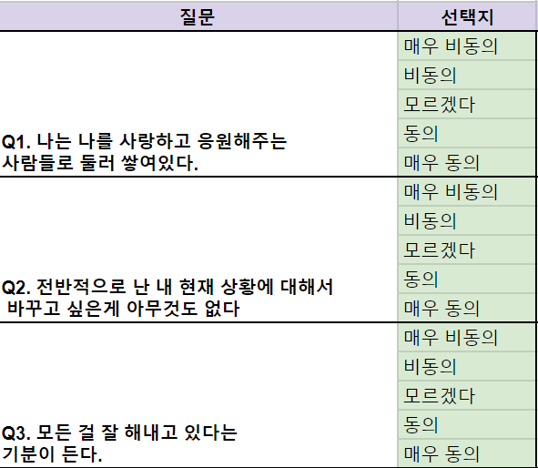 ☑️질문은 보통 10-15개 내외로 구성되어요.
