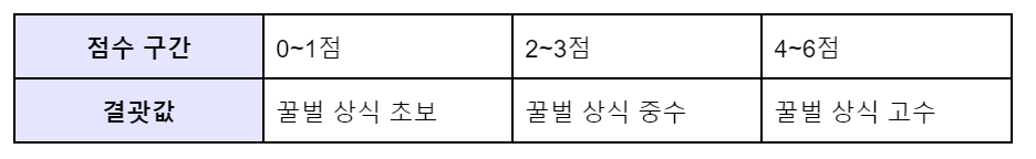 점수 범위를 구했다면, 적절하게 구간을 나누어 유저에게 보여줄 결괏값을 기획해 보세요. 이때, 점수 구간은 서로 겹치면 안 됩니다!