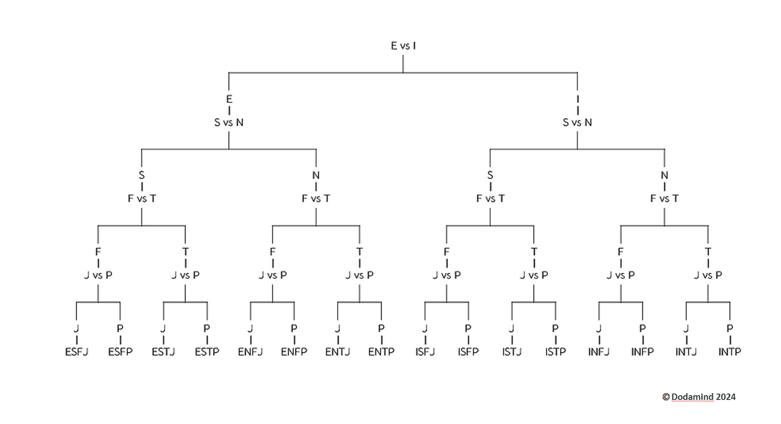 변인 페어링 로직을 활용해 결괏값을 도출하는 알고리즘 중, 제일 널리 알려진 사례는 MBTI입니다. 페어링 로직 테스트 기획을 설명하기 위해 MBTI를 예시로 들어 설명드릴게요.